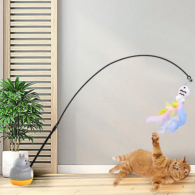 Chinchilla cat funny cat stick steel wire long pole feather cute cat toy kitten fishing rotating self-pleasure relief pet toy