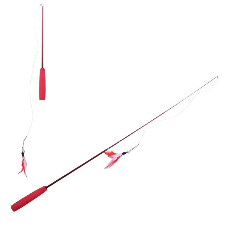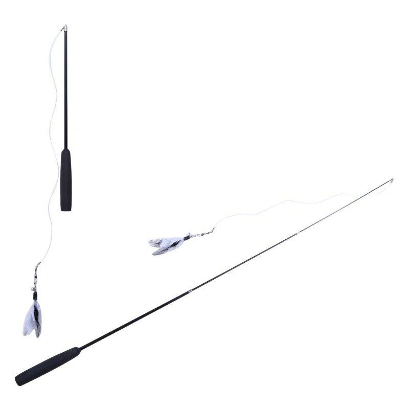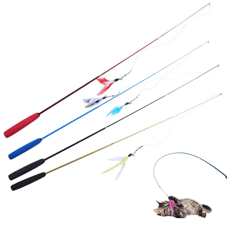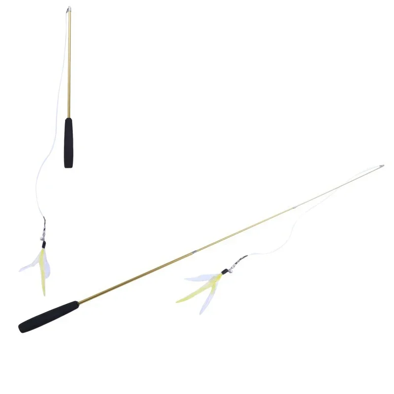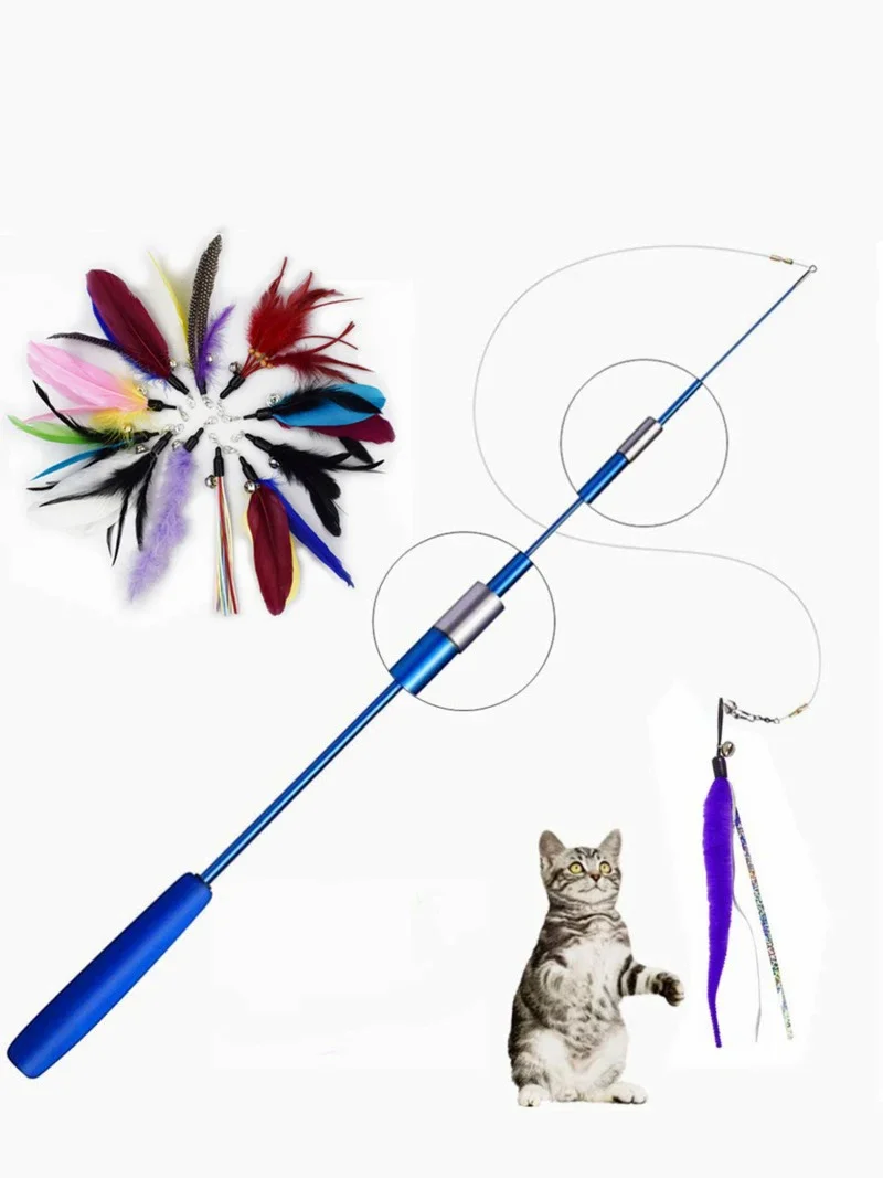 Interactive Cat Feather Toy Feather Teaser Stick Wand Pet Retractable Feather Bell Refill Replacement Catcher Product for Kitten