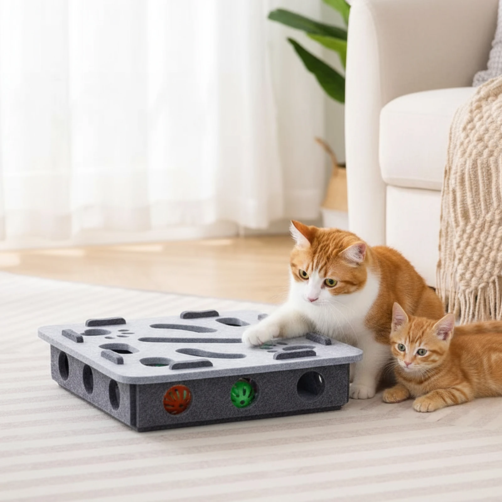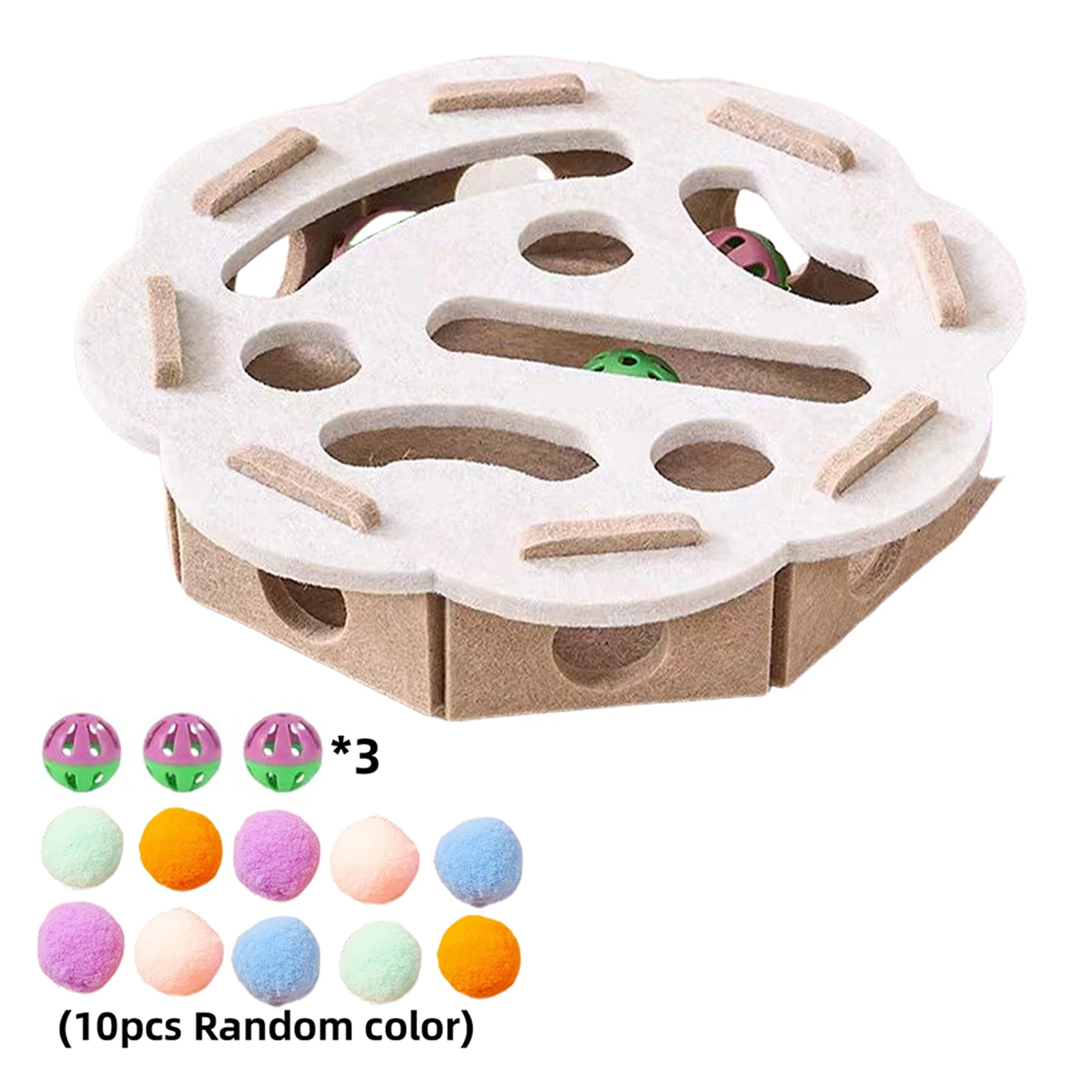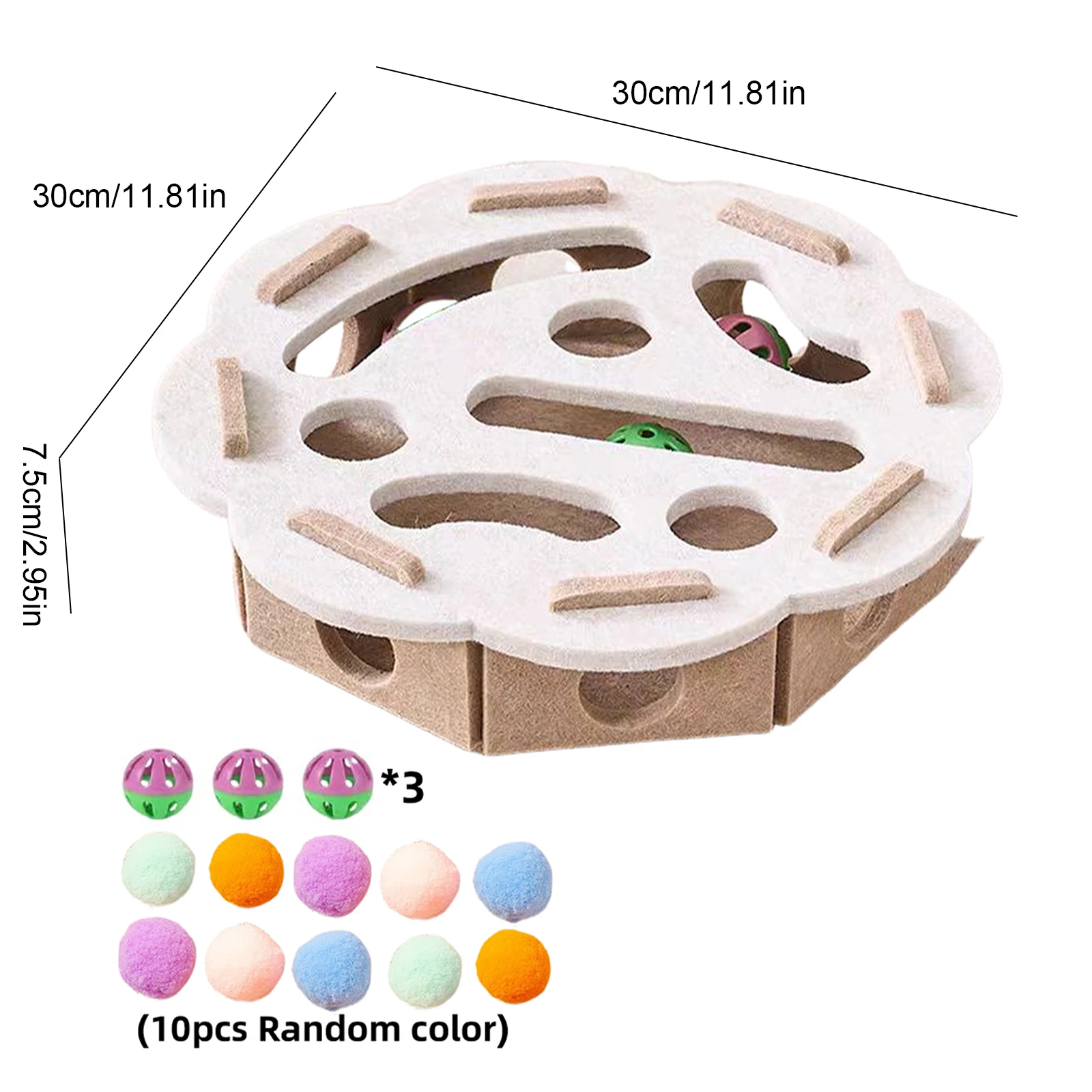2.Creative Track & Hollow Design Mimics Real Hunting: The felt puzzle box offers diverse tracks and cutouts, letting balls roll freely to simulate prey escape. Cats bat and chase balls through holes, boosting agility and combining play with skill building.