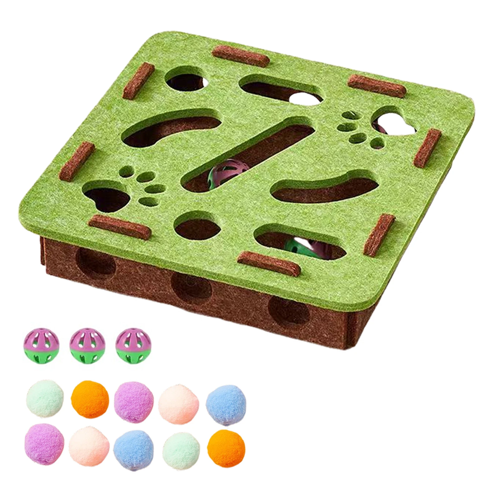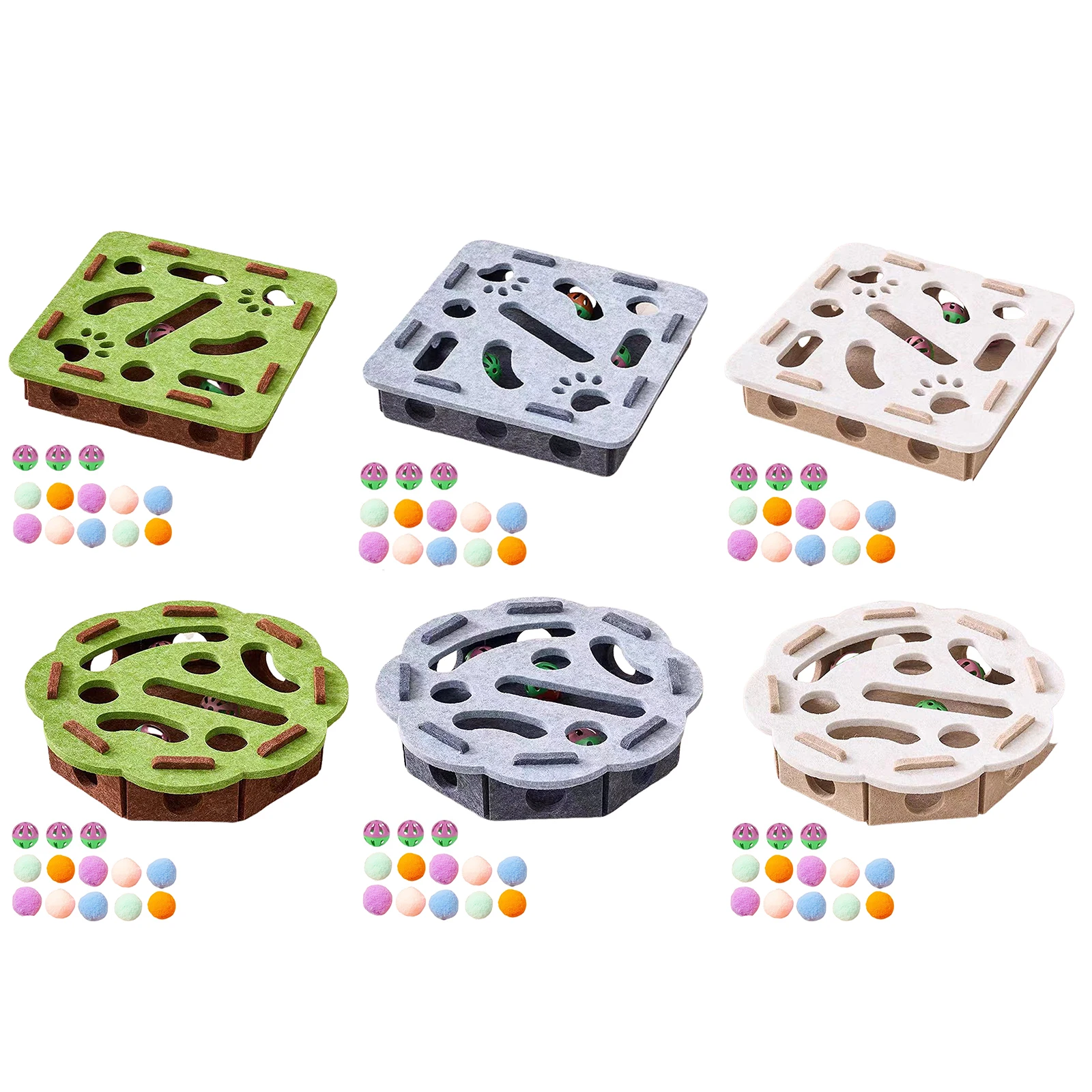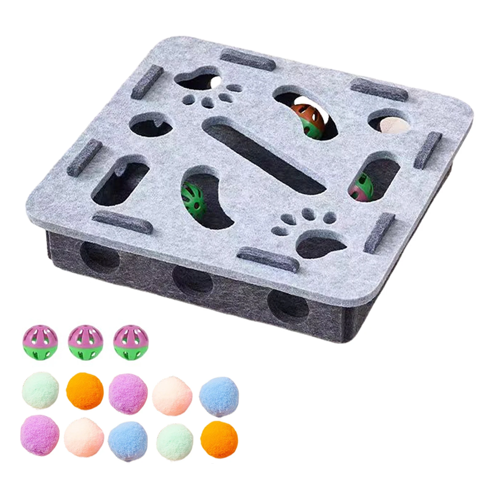 Interactive Cat Puzzle Toy with Ball Felt Puzzle Box Indoor Sports Entertainment Hunting Cat Toys for Indoor Cats
