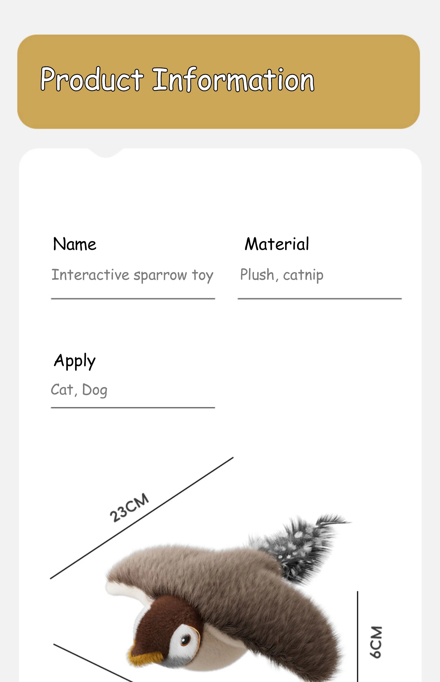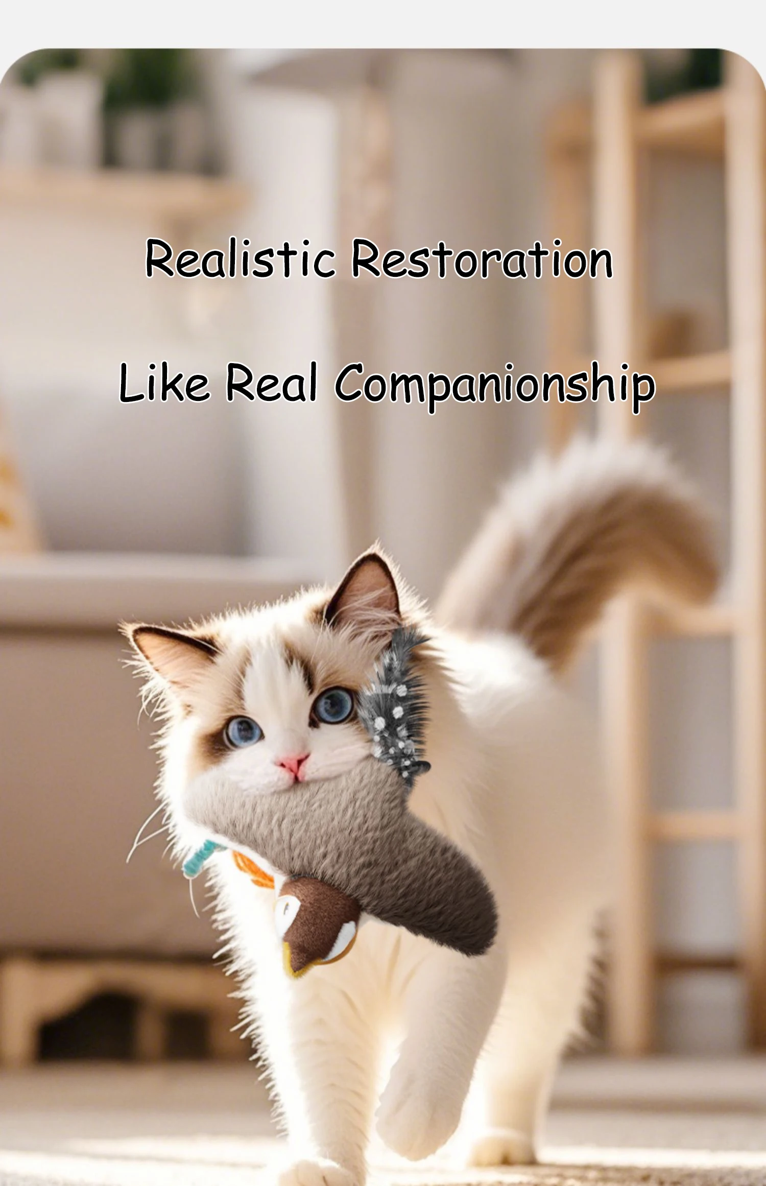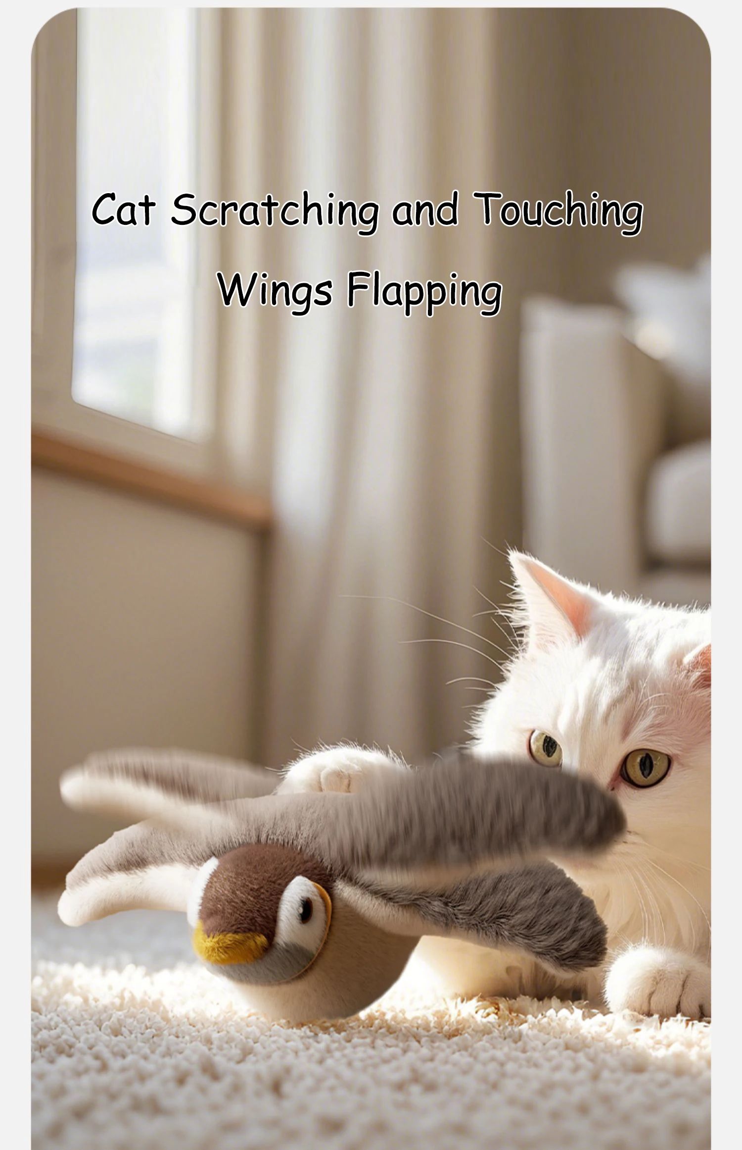 This product features a beautiful bird design. The toy comes with rechargeable batteries that power the bird to flap its wings and make chirping sounds. In addition to its realistic bird-like movements, which will attract your cat to come play and explore the toy. whether your cat wants to hunt the bird or just snuggle up to it, this toy is perfect for them.