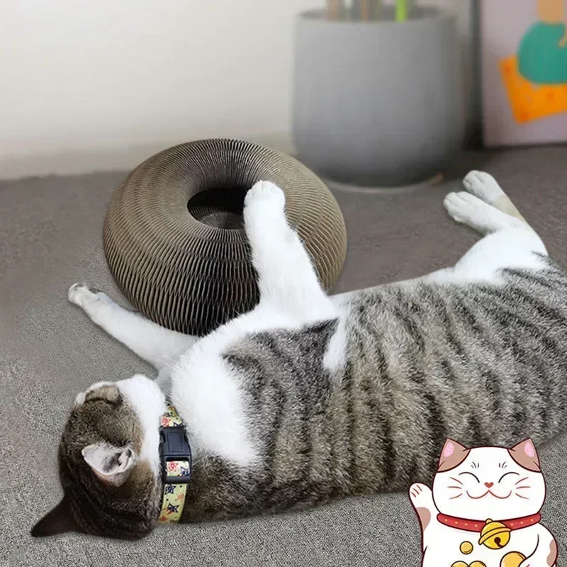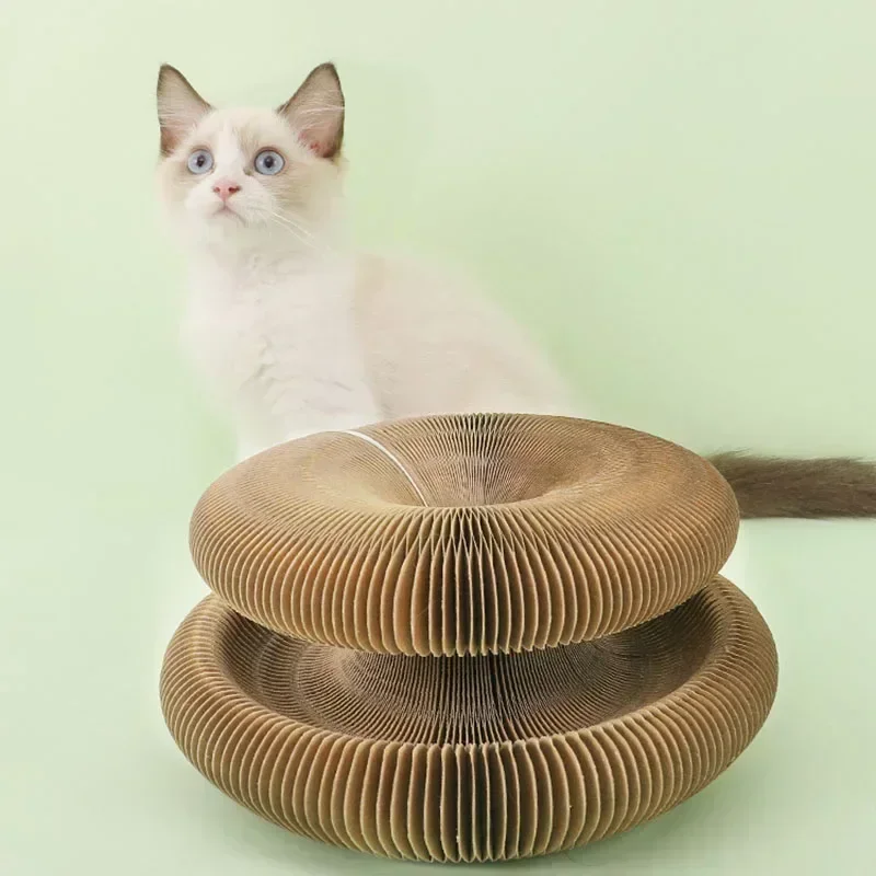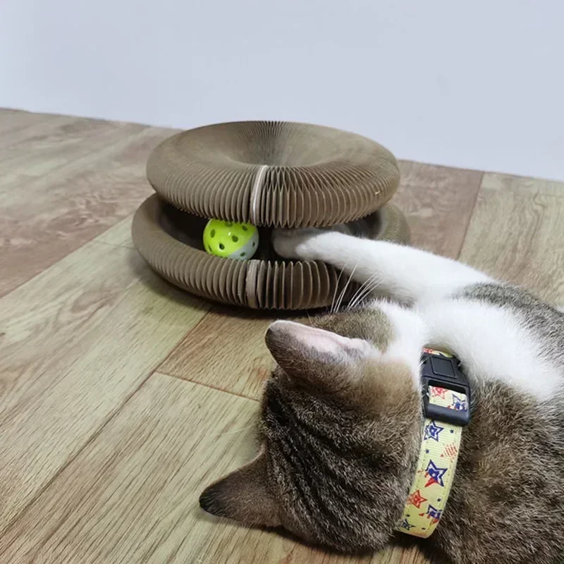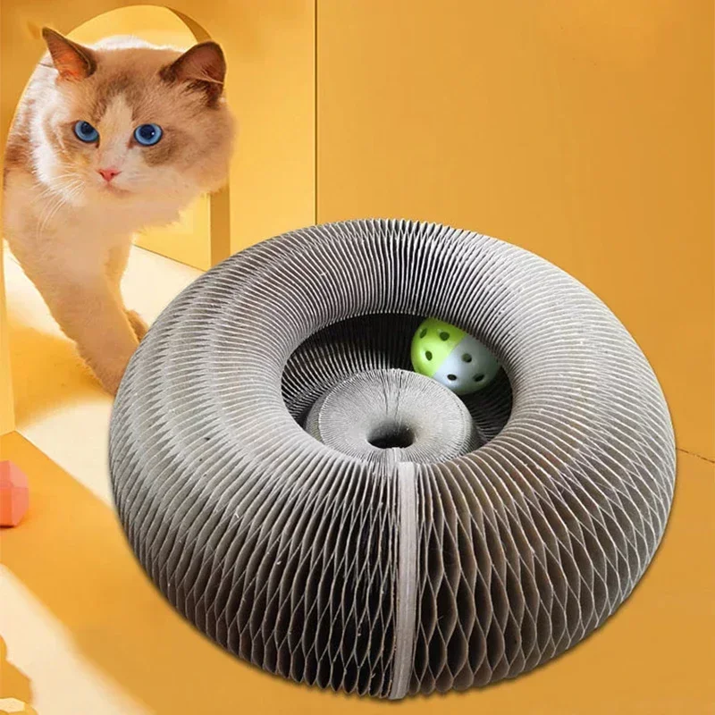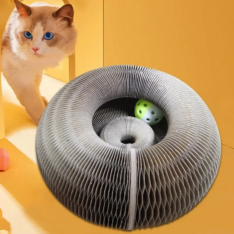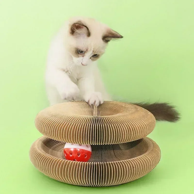 Interactive Cat Toys Magic Organ Cat Scratch Board with Bell Round Corrugated Scratching Toys Grinding Claw Cat Accessories
