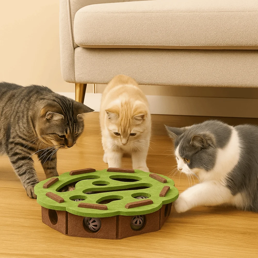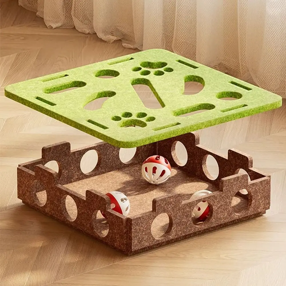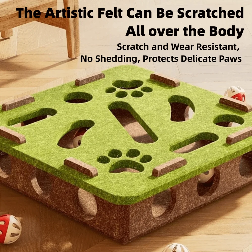 This toy serves multiple purposes – it’s a scratching board, a playhouse, and a ball launcher, making it a versatile addition to your pet’s playtime.
