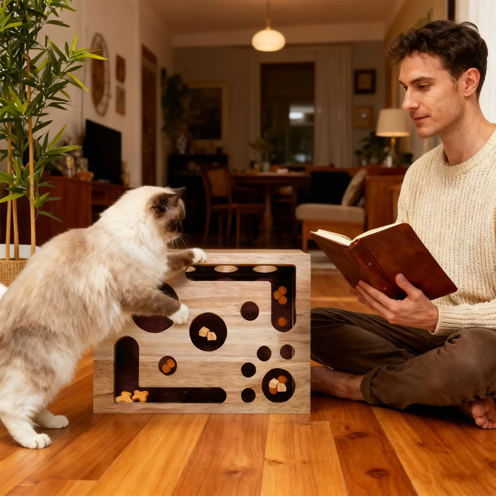 The Indoor Cat Scratch Puzzle Feeder Box is a wooden interactive scratcher designed to enrich your pet’s daily life. This small to medium-sized kitten item serves as both a stimulating plaything and a functional scratcher, addressing your indoor cat’s natural scratching instincts while providing hours of entertainment. Ideal for home use, this innovative pet supply keeps cats engaged in playing and stimulation, effectively relieving boredom. Crafted for durability and feline enjoyment, it supports daily activity needs, ensuring your cat keeps active and mentally stimulated indoors. The scratch puzzle feeder box seamlessly blends into your living space while offering an engaging experience tailored to your pet’s natural behaviors.