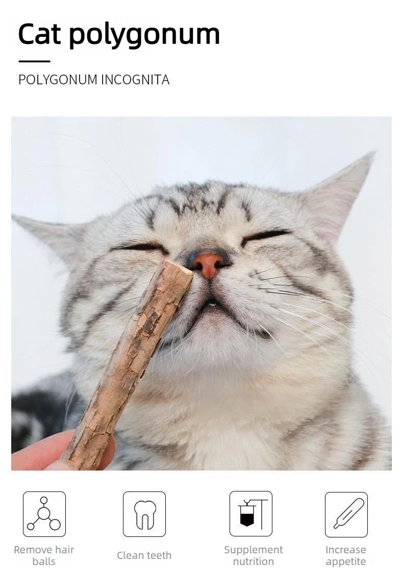 Package includes: 20 sticks/set Pet Cat Wood Polygonum Sticks Toy.